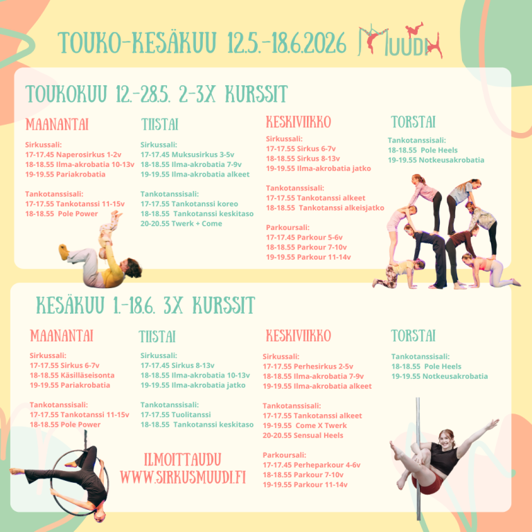Ilmoittaudu tutustumaan info@sirkusmuudi.fi.